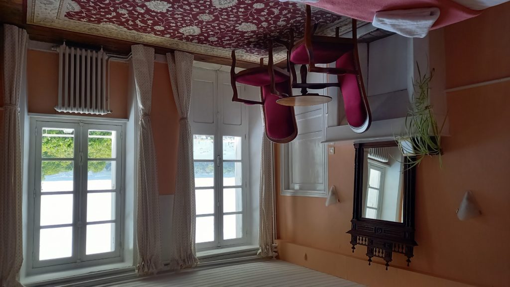 Het is een ruime kamer (20m²) met een 2-persoonsbed (1.60m breed), een zithoek (binnen en buiten). Op verzoek is het mogelijk om twee aparte 1-persoonsbedden te plaatsen. Tevens kan er een extra bed bijgezet worden.